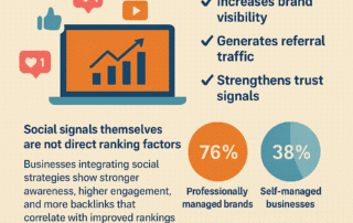 Summary: Social media doesn’t directly improve Google rankings, but it provides SEO value via indirect means.  By boosting branded search volume, increasing content exposure, and attracting backlinks, social platforms help reinforce authority.  Referral traffic from social channels validates content relevance and aids engagement metrics.  Consistent social profiles and NAP (Name, Address, Phone) alignment also support local SEO credibility.  Professional social media management tends to deliver higher ROI, more audience reach, and measurable SEO-boosting outcomes than self-managed efforts. Frequently Asked Questions About Social Media & SEO Below are answers to common questions small business owners ask about how social media impacts search rankings, ROI, and brand growth. These FAQs match the structured data schema for this post, helping Google recognize and display them as rich results.Does social media directly affect Google rankings?No. Social metrics like likes and followers are not direct ranking factors, but they boost branded search, backlinks, and engagement that support SEO performance. How [...]